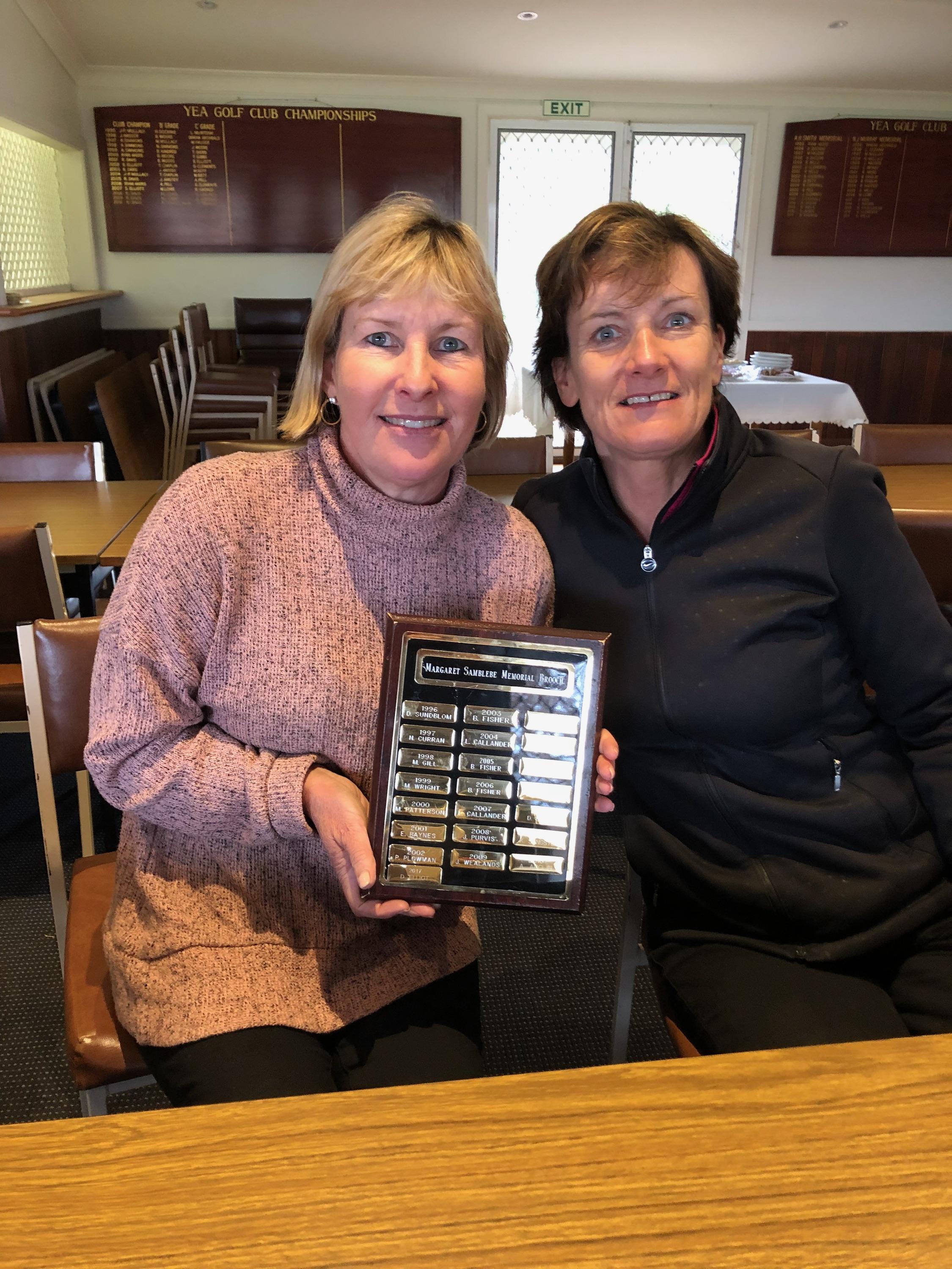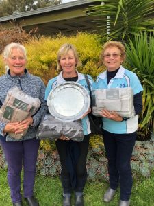 Very exciting times afoot for the Yea Ladies we have gone to the Par threes in Kyabram only claim to fame was singing with the Elvis impersonator but hey it was fun. It is always a great time together. Since then back at home We have held our Margaret Samblebe Brooch award and our talented winner Adrianne Anglin with a score of 35 and hot on her heals again Vicki Clements 33. But not only and not least we celebrated our young new 70 yr old’s birthday Di Elliott. On the 16th she will be turning 70 but looks many years younger a super fit young girl. Happy Birthday Di have an awesome day! But after all that hoo ha does not take away once again team Karen Sangster 30, Di Elliott 29 & Adrianne Anglin 27 won the Avenel Mabel Vering Silver Salver. It was a hard day at the office on wet sand scrapes scores were low but hey we all have to play the same field and we did it on the day. We are stoked Well done girls. Maybe we have to look at some place starting with B or a later letter the last two wins have started with A who cares we are stoked happy golfing