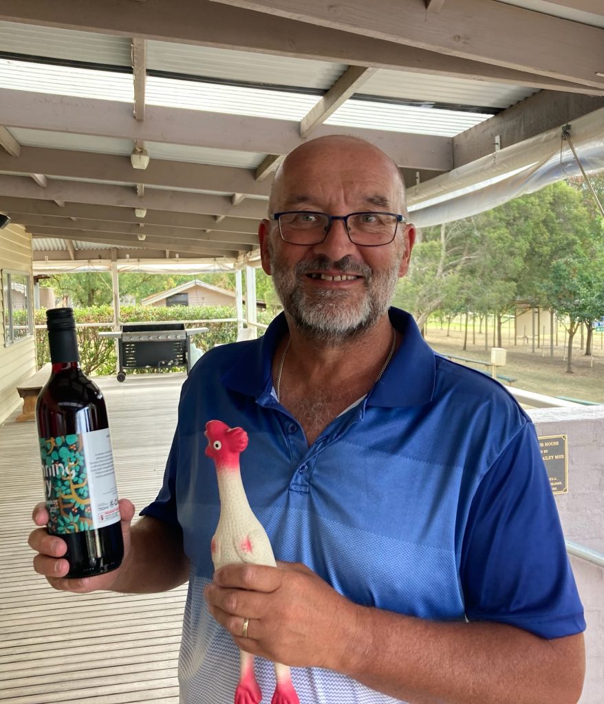 Chooklotto results were Trout took the stubby holder, Christine Simmons and Michael Sheather a bottle of wine each.